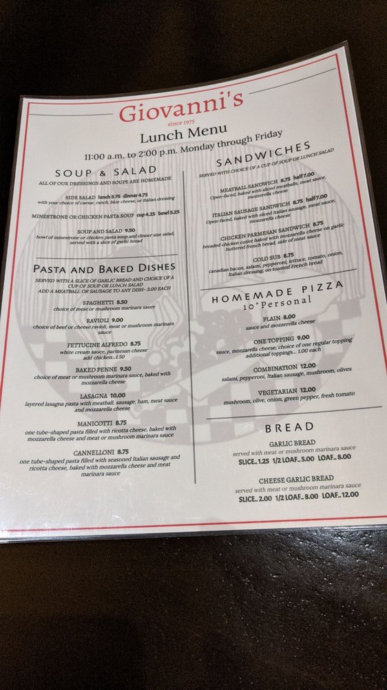 With convenient amenities like delivery, outdoor seating, and a variety of payment options, Giovanni’s invites you to enjoy Italian cuisine in a relaxed setting. Don’t miss out on this culinary treasure!